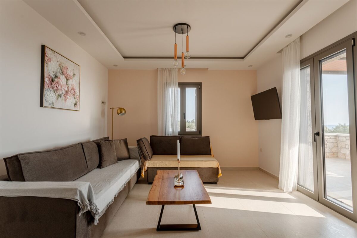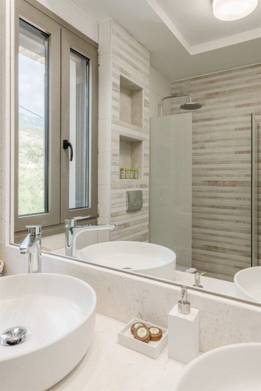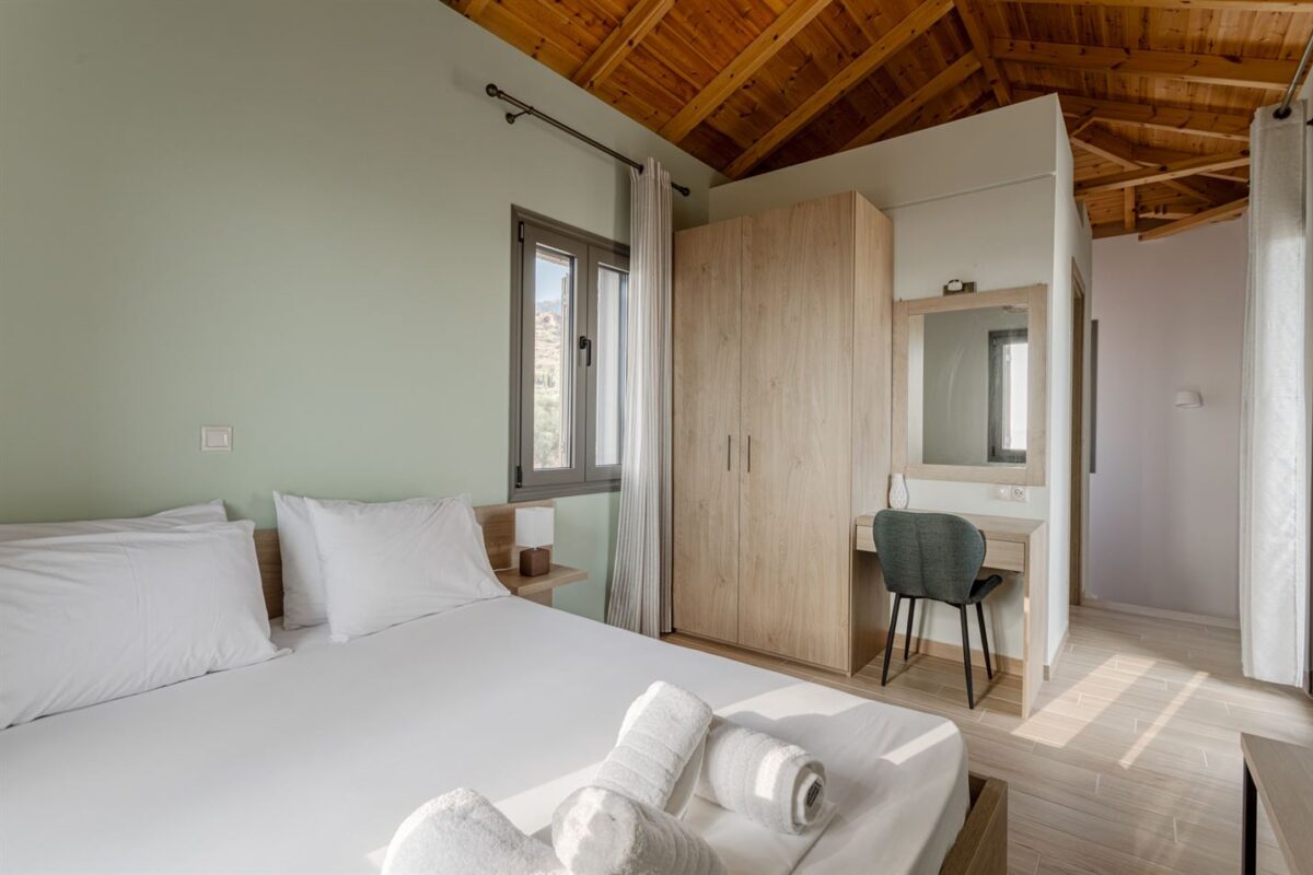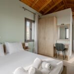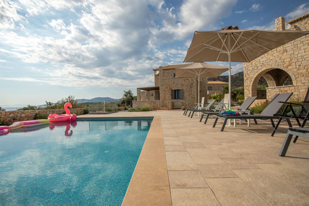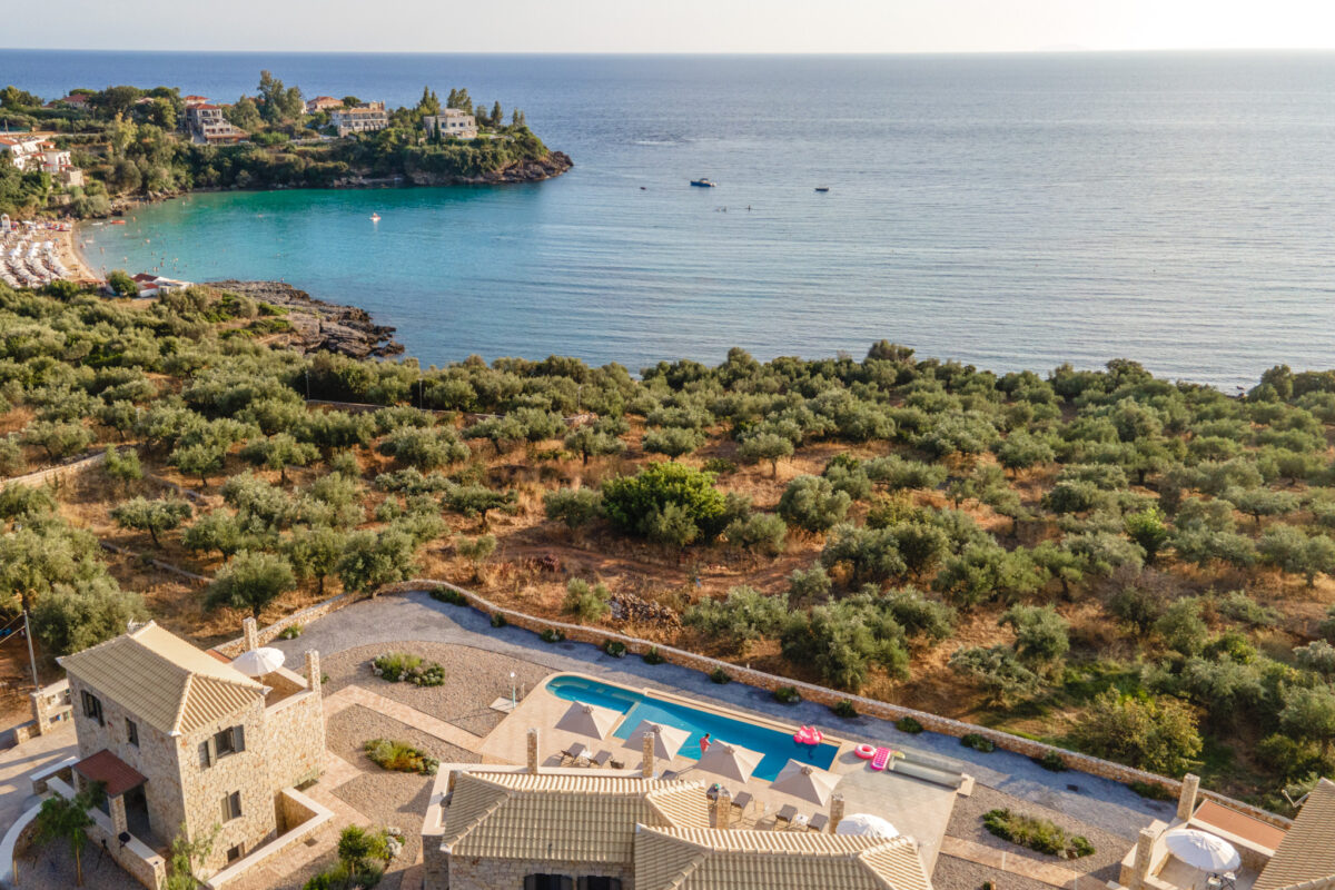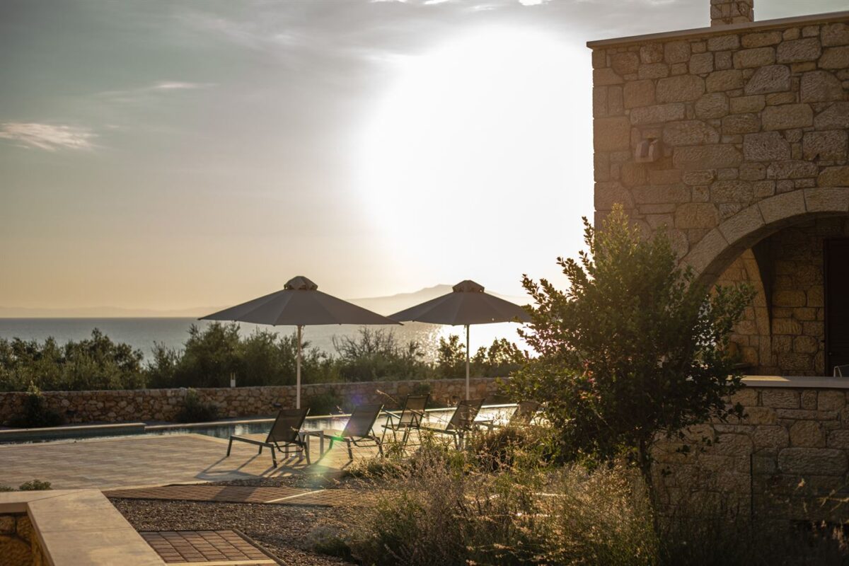 Each villa boasts spacious interiors with fully equipped kitchens, comfortable bedrooms, and private outdoor areas, including terraces and pools. Perfect for enjoying the Greek summer sun, the private pools provide a serene space to cool down and unwind. The villas also offer panoramic views of the surrounding natural beauty, from the olive groves to the breathtaking mountains and sea, allowing guests to immerse themselves in the tranquility of the area.