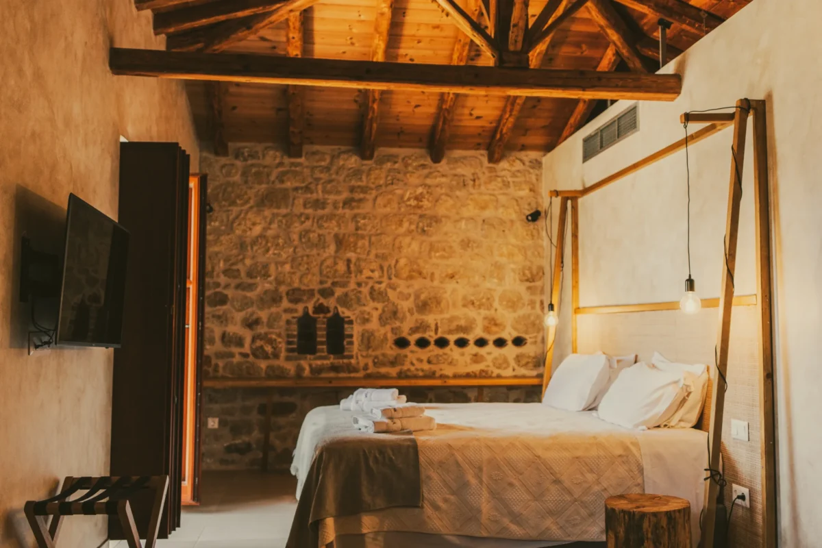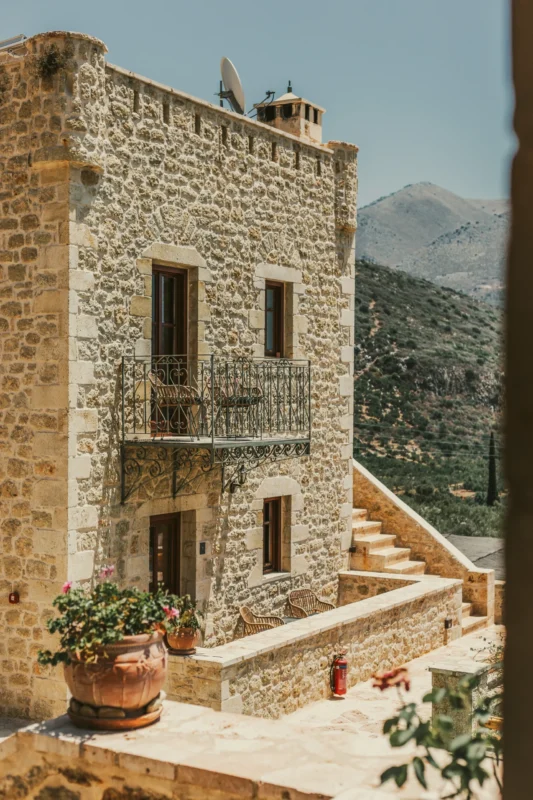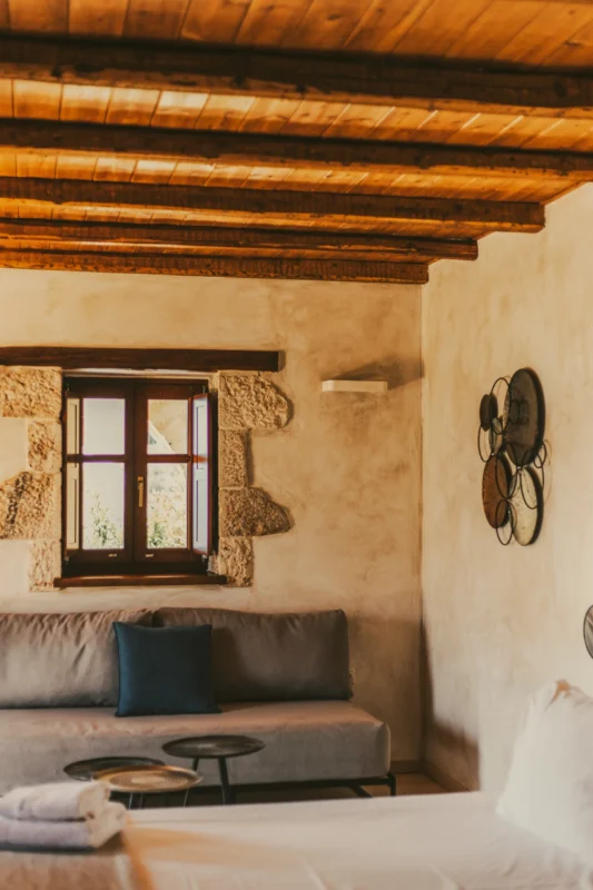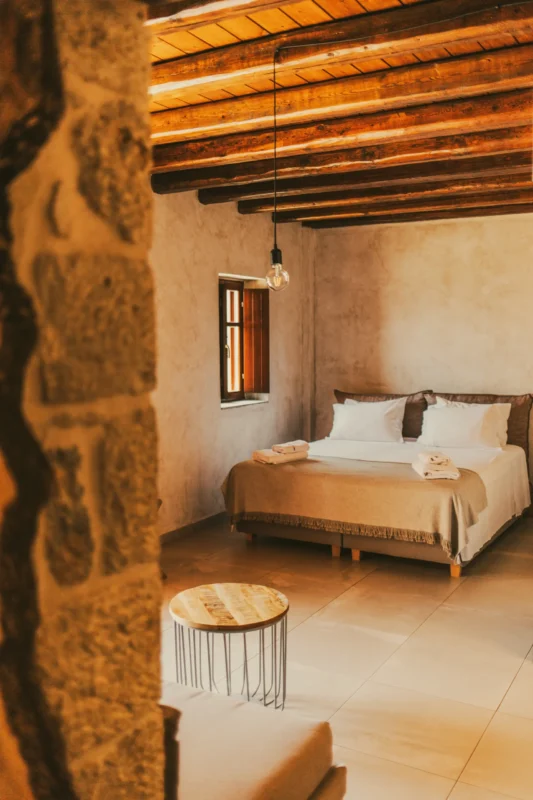 The hotel comprises five independent stone buildings, each housing suites that reflect Mani’s rich architectural heritage. Guests can choose from traditional, bohemian, or minimalistic designs, all thoughtfully curated to provide comfort and style. Every suite offers panoramic views of the sea and mountains, allowing guests to immerse themselves in the region’s natural beauty. Modern amenities complement the historic charm, ensuring a relaxing and indulgent experience.