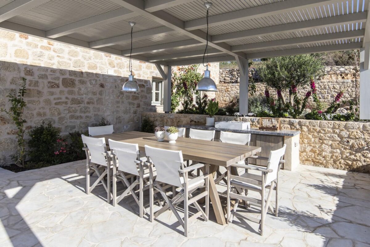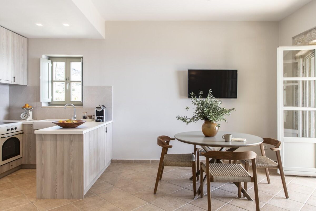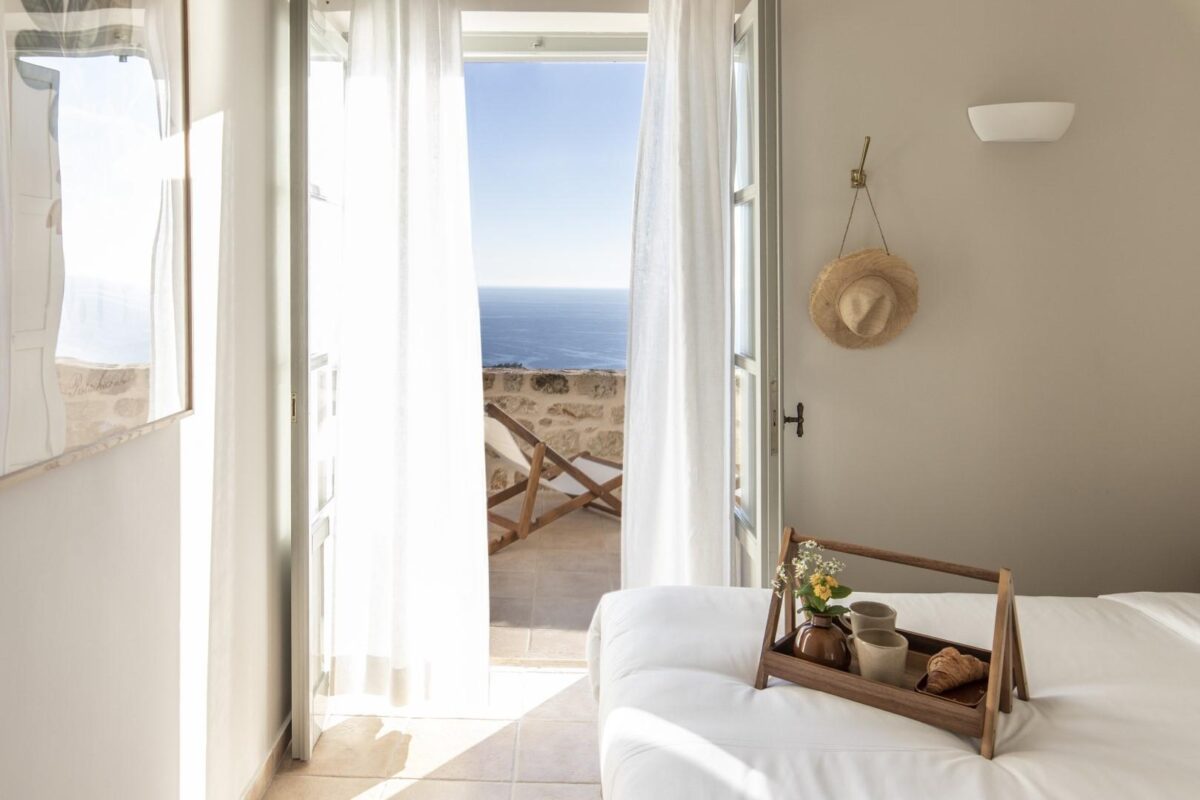 Guests can choose from beautifully appointed suites, spacious maisonettes, and two- or three-bedroom villas—all featuring stunning sea views and curated outdoor spaces. For larger groups or multi-family holidays, the impressive Amani Estate accommodates up to 14 guests, with two luxurious pools, multiple terraces, and expansive living areas.