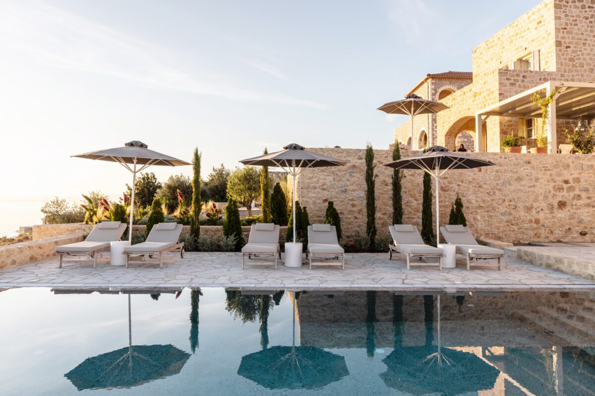 Amani Earthy Living is an oasis of contemporary elegance nestled in the hills of Neochori, West Mani. This exceptional retreat comprises two interconnected villa options and a grand estate, offering uninterrupted views over the Messinian Gulf. Designed by Interior Design Laboratorium and managed by Square Lime Premium Hospitality, each residence combines Mani’s traditional stone architecture with refined, minimalist interiors and private pools.