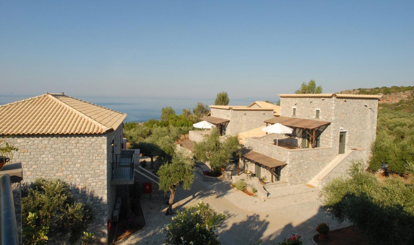 With a view of the placid bay of Kardamili in Mani, Melitsina Village Hotel offers comfortable Kardamili accommodation, a sophisticated and pristine corner of Greece in the southern Peloponnese. Within the hotel complex of impressive stone buildings, studios and apartments offer superb sea and garden views and the contemporary and stylish interior design provides guests with a warm and pleasant vacation experience.
