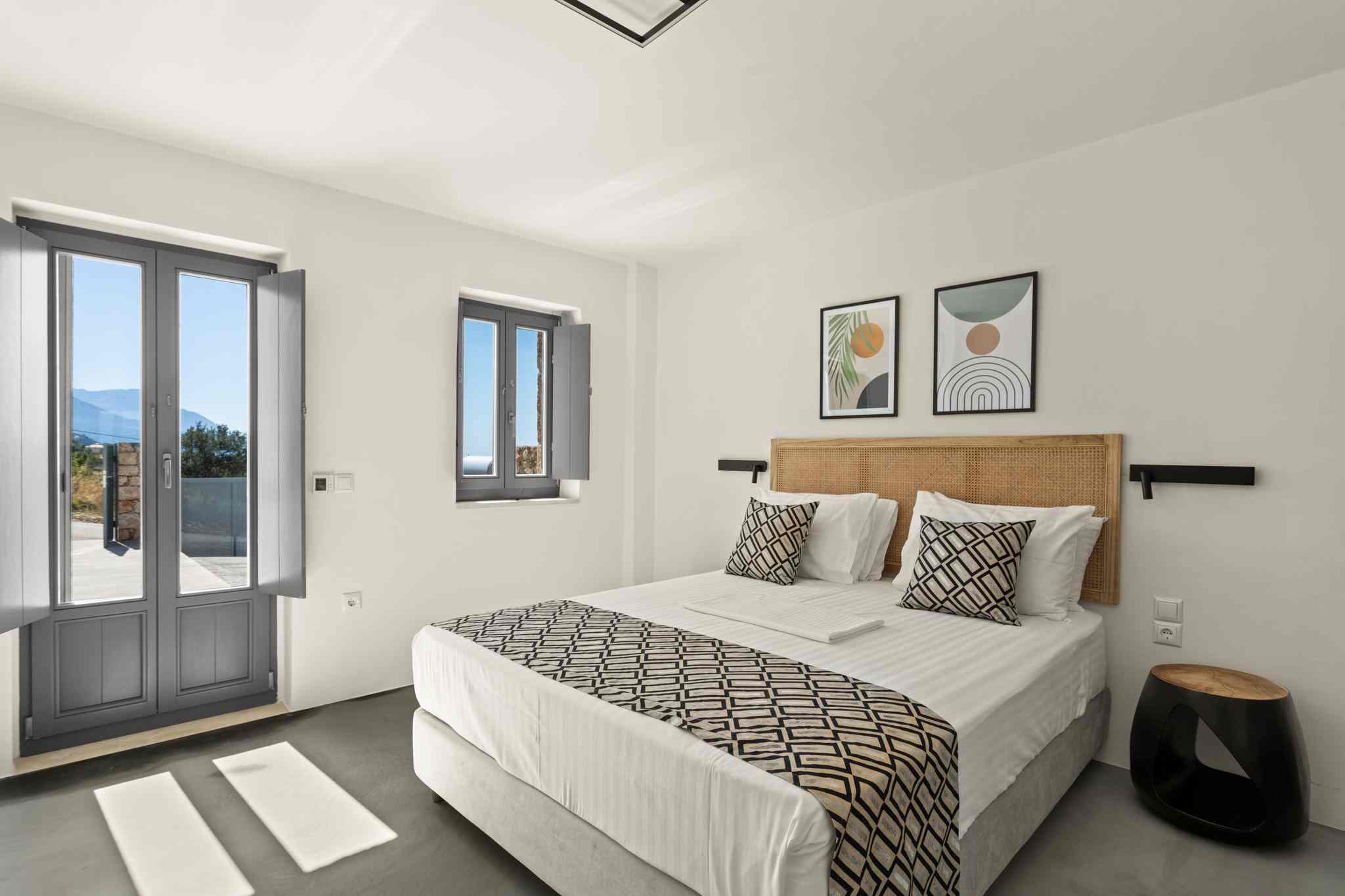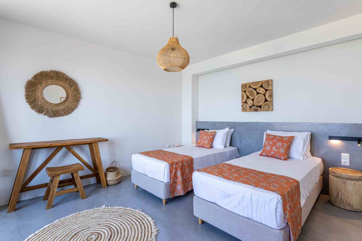 The villas share a consistent design language of local stone, timber accents, and bright interiors. Layouts typically include two or more bedrooms, an open plan kitchen and living area, and seamless flow to outdoor spaces for breakfast, reading, or evening aperitifs. Thoughtful details and modern comforts make longer stays simple, whether you are traveling as a couple, a family, or with friends.