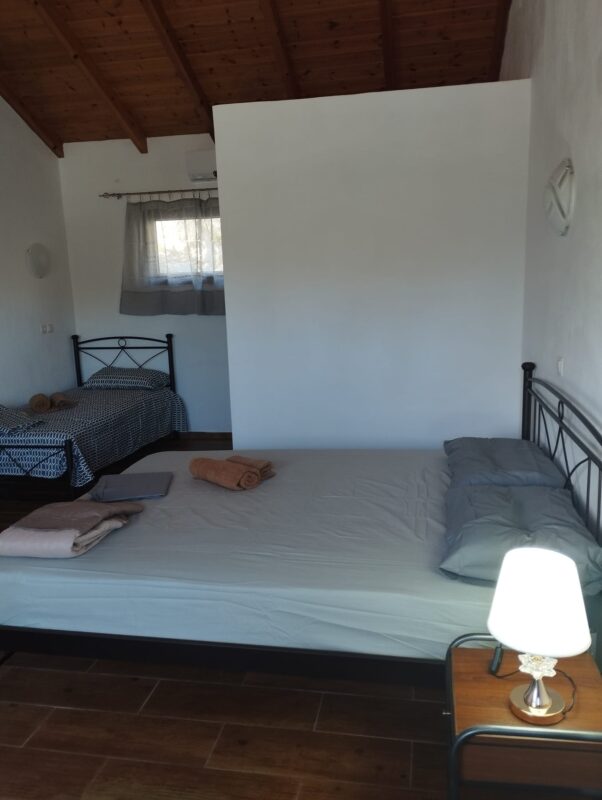 Surrounded by olive trees and just meters from the clear waters of the Ionian Sea, these rooms in Kamares are ideal for couples, solo travelers, and small families alike. Wake up to the sound of the waves and enjoy your morning coffee with your feet in the sand.