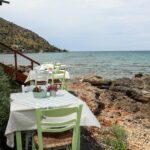 Set on the iconic “Karavopetra” rock—once used by merchants to anchor and bring goods ashore—this family-run taverna blends culinary tradition with a spectacular coastal location. Surrounded by olive trees and sea breezes, diners can enjoy meals that reflect the rich land and heritage of the region.