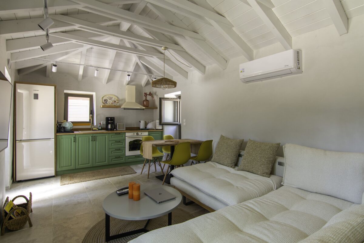 This charming single-room villa combines rustic charm with modern comforts. Inside, guests will find a cosy double bed and a sofa bed, comfortably accommodating up to three adults and two children. The villa is equipped with a fully functional kitchen, air conditioning, and complimentary Wi-Fi, making it an excellent base for exploring Kardamyli and the Mani Peninsula. Outside, a private terrace overlooks the serene olive grove and offers stunning sea views, perfect for al fresco dining or relaxing under the Mediterranean sun.